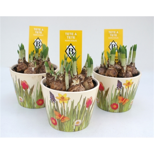 Narcissus Tête a tête in keramieke pot met voorjaarsdeco (NT 273)