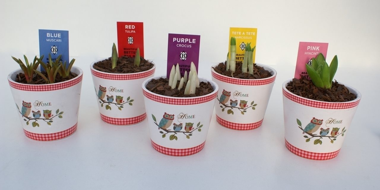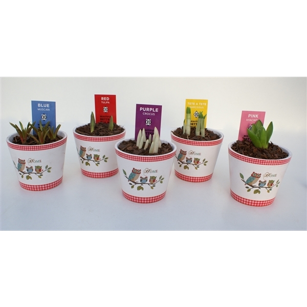 Bolbloemen div. soorten in keramiek met Uil design (BM 450)