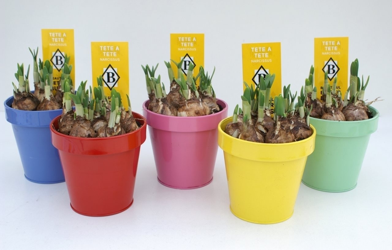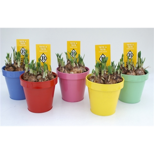 Narcissus Tête a tête in zinken kleurpot. (NT 552)