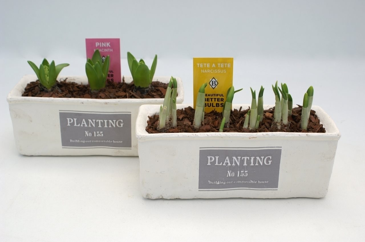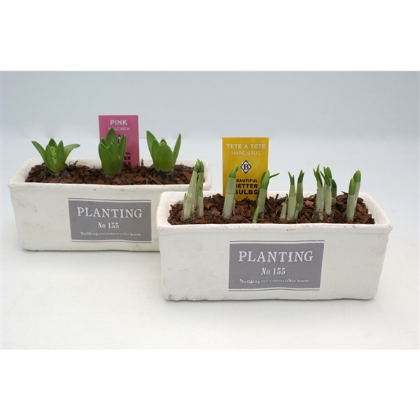Bolbloemen div. soorten in witte keramieke schaal met opdruk (BM 277)